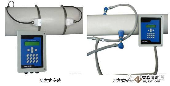 超聲波流量計的傳感器一般采用V方式和Z方式安裝,通常情況下,管徑小于300mm時,采用V方式安裝,管徑大于200mm時,采用Z方式安裝。對于即可以用V方式安裝又可以Z方式安裝的傳感器,盡量選用Z方式。實踐表明,Z方式安裝的傳感器超聲波信號強度高,測量的穩定性也好,圖2。