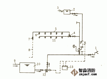 水噴霧系統的組成與工作原理與雨淋系統基本相同。其區別主要在于噴頭的結構和性能不同:前者采用中速或高速噴霧噴頭,后者則采用標準型開式噴頭。