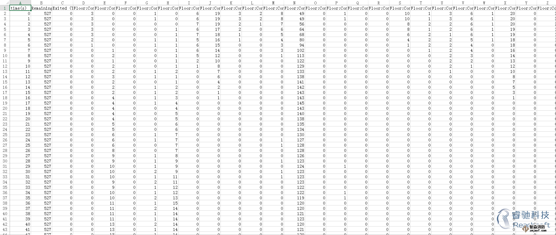 -除了3D模擬視圖,Pathfinder還提供了2D時間關系曲線圖的CSV文件和記錄樓層疏散時間和出入口流通率的文本文件。